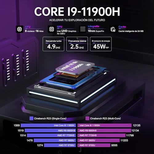 ACEMAGIC AD08 Mini PC Gaming [Ajuste de 3 modos], Intel i9-11900H (8C/16T, Hasta 4,9 GHz), 16 GB DDR4 512 GB NVME SSD,Mini Ordenador con Win11 Pro | WiFi 6 | BT 5.2 | RGB DDR