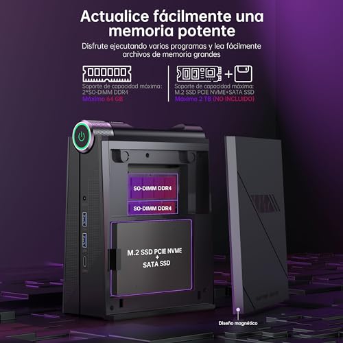 【Inicio rápido, rebosante de potencial de trabajo】AD08 Mini PC está equipado con 16GB (2x8GB) de doble canal DDR4 , la velocidad de la memoria alcanza 3200MHz, que es 20% más rápida que la memoria 2666MH y soporta la expansión de hasta 64GB (32GB + 32GB). Preinstalación de 512GB M.2 2280 NVMe SSD, que mejora enormemente la velocidad de arranque del ordenador y la respuesta de las aplicaciones.