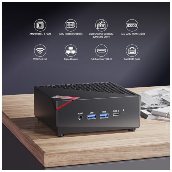 【4K a 60HZ y DISPALY】El PC pequeña de escritorio está integrado con GPU AMD Radeon Vega7 1900MHz, proporcionando una potente potencia de procesamiento gráfico para una reproducción extremadamente fluida de películas 4K UHD, permitiendo que cada detalle se refleje perfectamente para una increíble experiencia de visualización en pantalla grande. Con puertos HDMI y Type-C duales, puede conectar fácilmente hasta 3 monitores, reduciendo el tiempo de espera y multiplicando la eficiencia del trabajo.