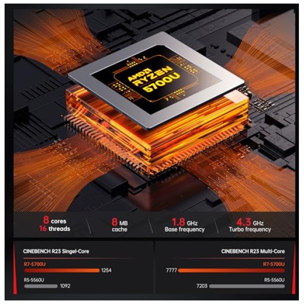 【Mini PC RYZEN 7 5700U Processor】 ACEMAGICIAN mini PC está equipado con AMD Ryzen 7 5700U (1.8-4.3GHz, 8 cores 16 threads, 8MB L3 cache). Proceso litográfico de 7nm, chip más pequeño y más potente que Ryzen 5600U/5500U, puede ejecutar fácilmente software de oficina como PS, PR, CAD, ArcGIS, etc. También puede jugar a grandes juegos como LOL, GTA5, CSGO, etc.