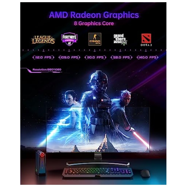 ACEMAGICIAN Mini PC de Juegos, Luces RGB AMD Ryzen 7 5700U (hasta 4,3 GHz),16 GB DDR4 512 GB NVMe SSD, AMR5 Mini Ordenador 4K HDMI DP Type-C WiFi 6 BT 5.2 PC pequeño, Encendido automático