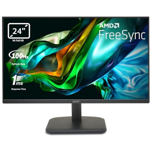 Acer EK241YHBIF – Monitor 24 » Full HD 100 Hz (60 cm, 1920×1080, 16:9, 250 Nits, Tiempo de Respuesta 1 ms VRB, AMD FreeSync, Zero Frame 1xVGA, 1xHDMI 1.4) Monitor PC Color Negro