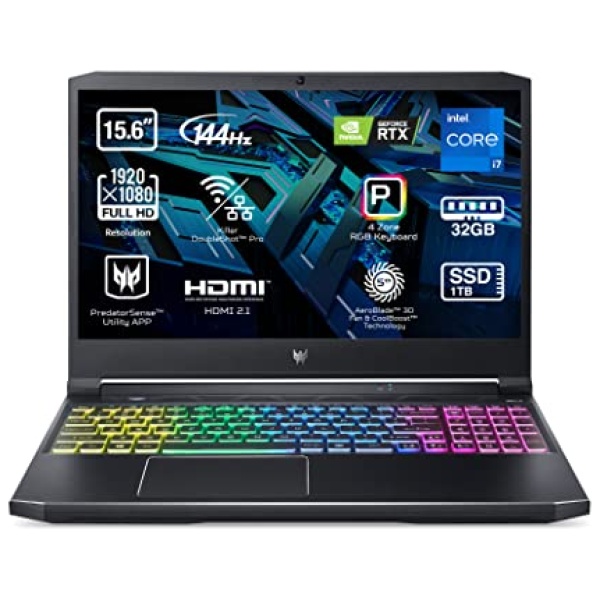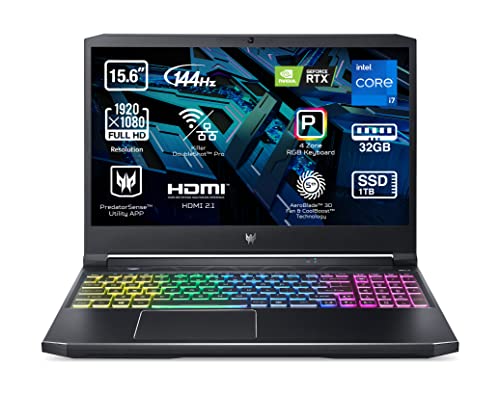 Acer Predator Helios 300 PH315-54 Ordenador Portátil Gaming 15.6″ IPS Full HD 144 Hz, Gaming Laptop (Intel Core i7-11800H, 32GB RAM, 1TB SSD, NVIDIA GeForce RTX 3060, Sin SO) PC Portátil Negro, QWERTY