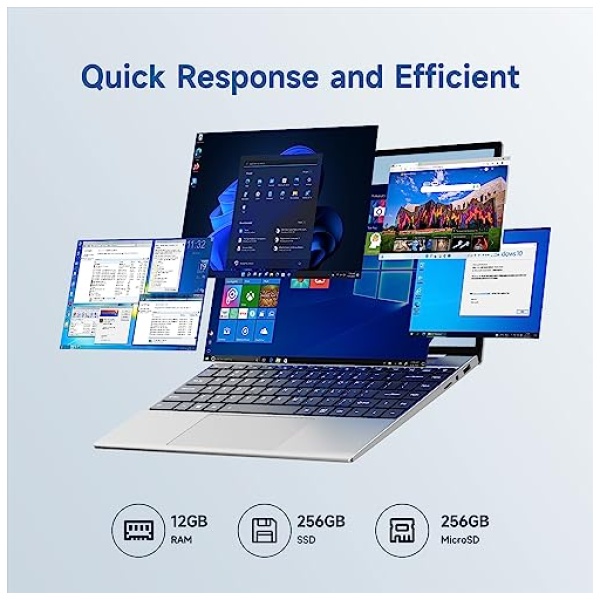 💻【12GB de RAM + 256GB SSD】 Este ordenador portátil cuenta con 12GB de RAM, lo que le ayuda a realizar múltiples tareas de manera estable y sin latencia. Equipado con un SSD de 256 GB y admite tarjetas TF de hasta 256 GB, tiene suficiente espacio para almacenar aplicaciones, canciones, videos, imágenes, etc. Además, puede usar este portátil gaming para juegos ligeros.