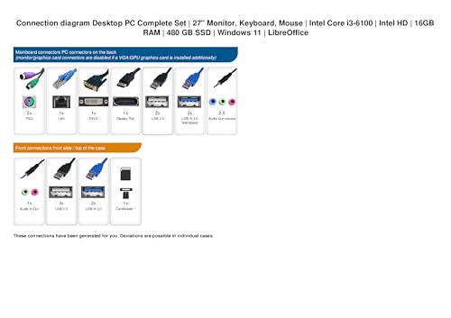 Ankermann Desktop PC Complete Set | 27 Pulgadas Monitor, Keyboard, Mouse | Intel Core i3-6100 | Intel HD | 16GB RAM | 480 GB SSD | Windows 11 | LibreOffice