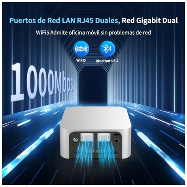 AskHand Mini PC,12ª Gen Intel N100 (hasta 3,40GHz,4C/4T), 8GB LPDDR5 RAM 256GB SSD, Windows 11 Pro/RJ45*2/ USB*3 / HDMI*3, 4K@60Hz Salida simultánea de Tres Pantallas, Mini Ordenador