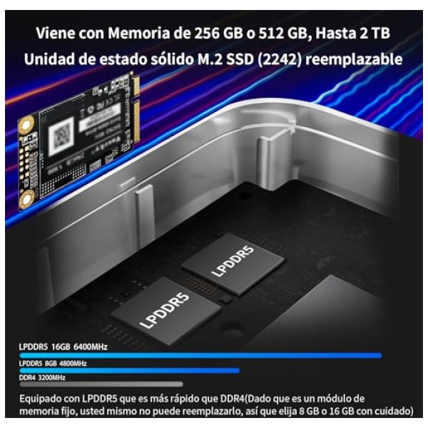 【8GB LPDDR5 + 256GB M.2 SSD】AskHand N100 mini computer viene con memoria 8 GB RAM LPDDR5 de un solo canal integrada (máx. 6400 MHz) y SSD M.2 (2242) de 256 GB, asegurando multitarea sin demoras. Ahora la mini torre ordenador está lista para asumir cargas de trabajo exigentes y ayudarlo a despedirse del retraso y la falta de respuesta. Puede ampliar el almacenamiento hasta 1 TB con SSD M.2 (2242). Equipado con sistema de refrigeración por ventilador de alta eficiencia.