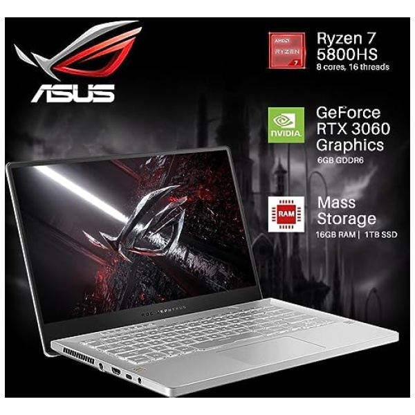 ASUS ROG Zephyrus Gaming Laptop 2023, pantalla FHD 144 Hz, AMD Ryzen 7 5800HS (hasta 4.4 GHz), gráficos NVIDIA GeForce RTX 3060, 16 GB de RAM, SSD de 1 TB, Bluetooth, WiFi 6, Windows 11 Home