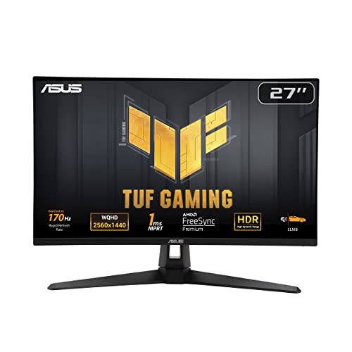 ASUS TUF Gaming VG27AQA1A – Monitor de 27″ WQHD (2560×1440), Overclock 170Hz (por encima de 144Hz), Extreme Low Motion Blur, Freesync Premium, 1ms (MPRT), Shadow Boost, HDR, DisplayWidget Lite