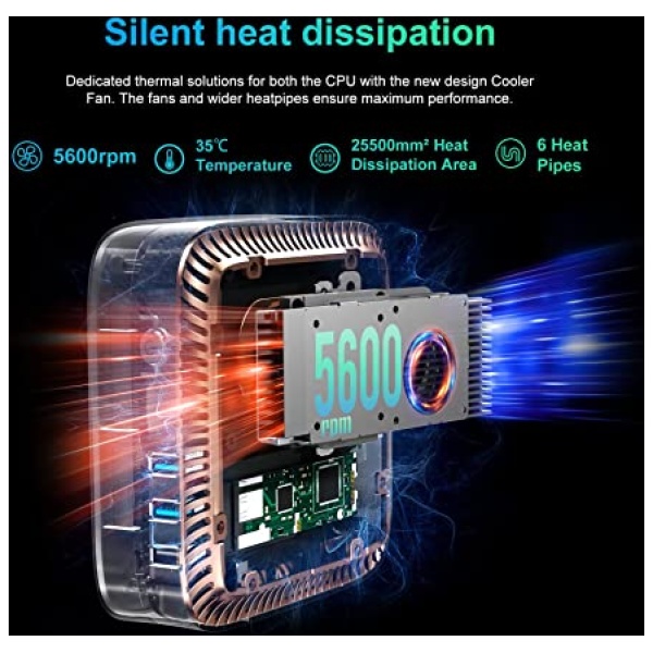 【Bajo consumo de energía y portátil】 Consumo de energía de la CPU tan bajo como 10W, el trabajo de la CPU durante 100 horas consume solo 1 grado de electricidad; Diseño de enfriamiento por vacío circundante, en comparación con la computadora de escritorio, la velocidad de enfriamiento es más rápida y silenciosa. El cuerpo ultrapequeño de 0,6 L, equipado con una base colgante VESA, se puede montar fácilmente detrás del monitor y el televisor, ahorra espacio.