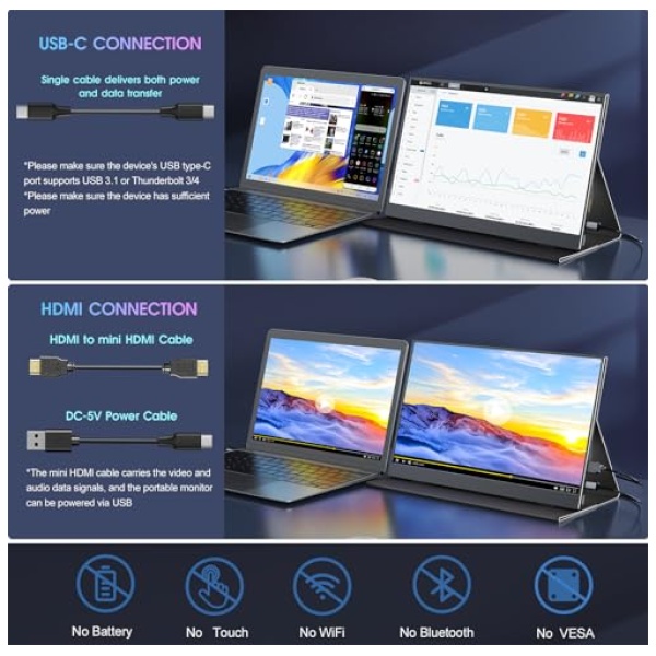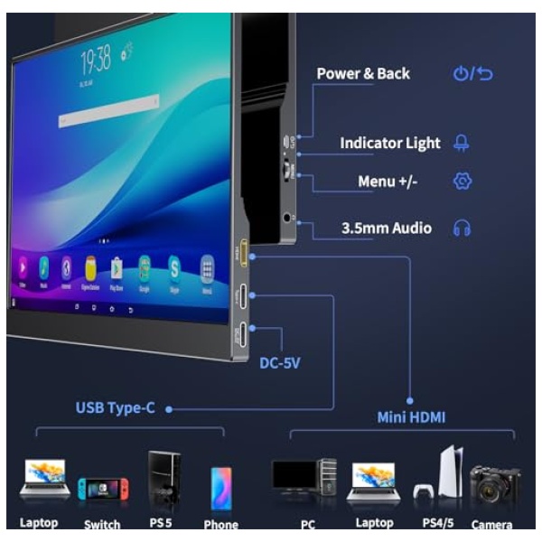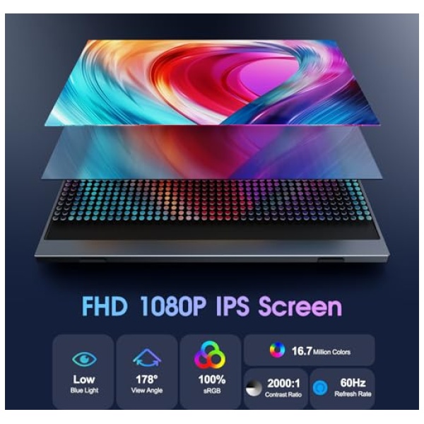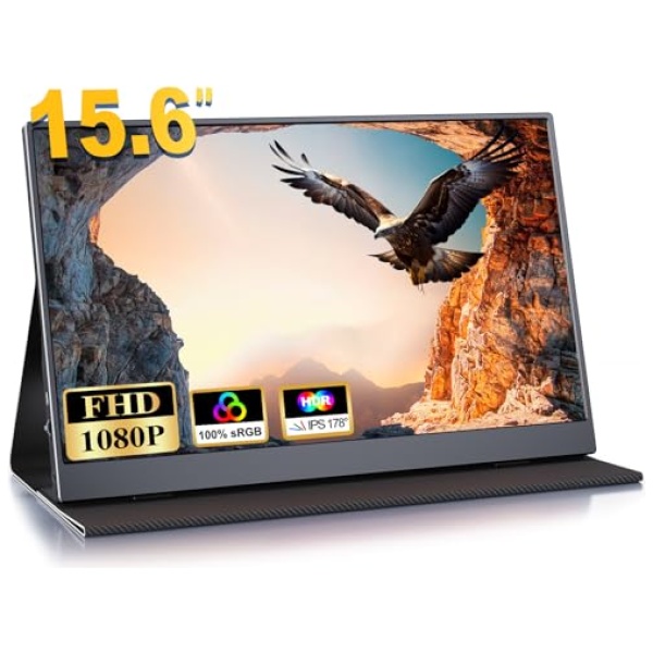 【Full HD Screen】 Monitor portatil con panel LCD IPS, resolución Full HD de 1920×1080, frecuencia de actualización de 60Hz, ángulo de visión de 178°, cobertura de gama de colores sRGB del 100%, pantalla HDR de protección ocular.