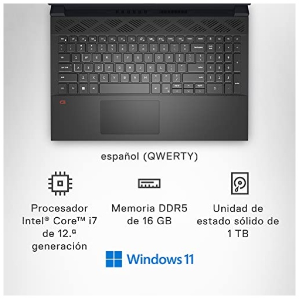 Dell G15 5520 – Ordenador portátil Gaming 15.6″ FullHD (Intel Core i7-12700H , 16GB RAM, 1TB SSD, NDIVIA RTX 3070Ti,Windows 11) Gris – Teclado QWERTY español