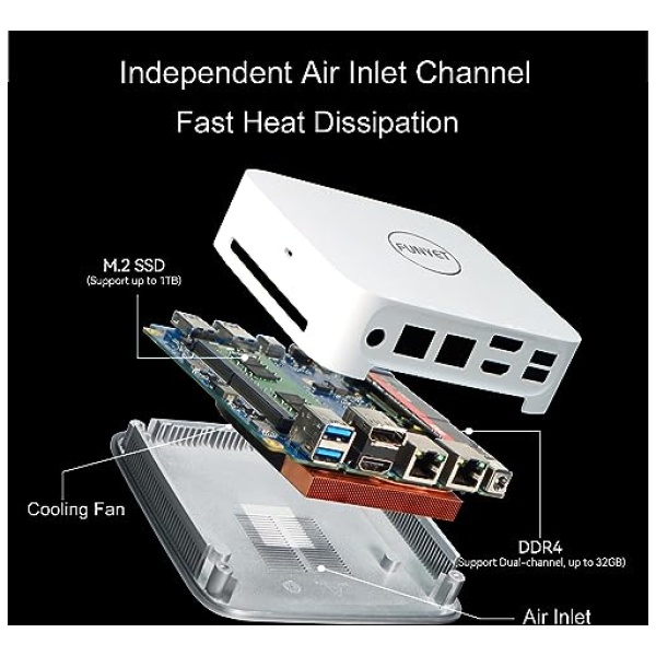 🚀【Soporta monitores duales 4K 60Hz】 MINI PC lleva puertos HDMI, TYPE-C y DC para lograr compatibilidad con monitores duales y maximizar la productividad del flujo de trabajo, haciendo que sus operaciones multitarea sean más eficientes. MINI PC admite pantalla de ultra alta definición 4K 60Hz con la ayuda de la tarjeta gráfica Intel UHD. También está equipado con un ventilador para una mejor disipación del calor. Es una mini PC adecuada para uso doméstico y de oficina.