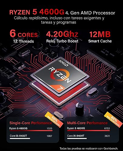 Greed® Basic V2 PC con AMD Ryzen 5 4600G – Ordenador de sobremesa + Home Office con 4,2 GHz, 8 GB RAM/RAM – 256 GB SSD – DVD+RW – USB3.1 – Wi-Fi, con Windows 11 Pro