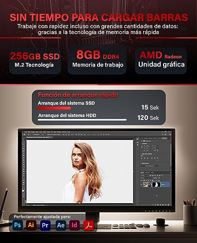 Perfecto para el uso diario. Nuestro soporte para PC está equipado con el sistema operativo Windows 11 Pro / WIN 11 Professional de 64 bits y el paquete Office. Gracias a nuestro disco duro SSD de 256 GB integrado, tendrás espacio de sobra para tus fotos, vídeos y otros datos personales.