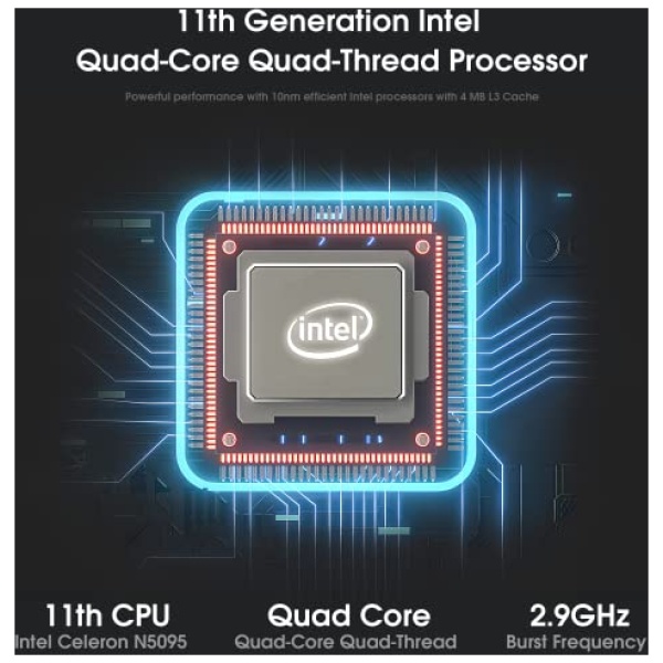 【Procesador de núcleo cuádruple 11th Gen 】Con 11th Gen Intel Celeron N5095, burst frecuencia 2,9GHz,Quad Core processor con 4 hilos, tecnología 10nm, caché reaches to 4MB, Intel UHD Graphics, rendimiento de CPU increased by 35%, GPU rendimiento increased by 78% compared with Gemini Lake.