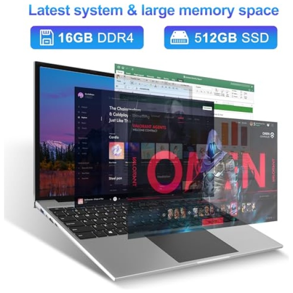 【Alta velocidad RAM & Enormous Space】Con 16 GB de memoria RAM incorporada y 512 GB de almacenamiento SSD. El portátil te permite experimentar multitasking y banda ancha. También es compatible con la expansión de la tarjeta TF de 256 GB.