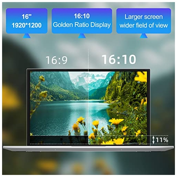 【Pantalla Wide Screen】Las imágenes impresionantes cobran vida gracias a la pantalla IPS FHD de 16 pulgadas 1920 x 1200 (16:10). Este portátil tiene una superficie de pantalla increíble con una relación pantalla/cuerpo del 93% que permite mostrar más contenido, ofrecer una experiencia visual cómoda y una mayor eficiencia.