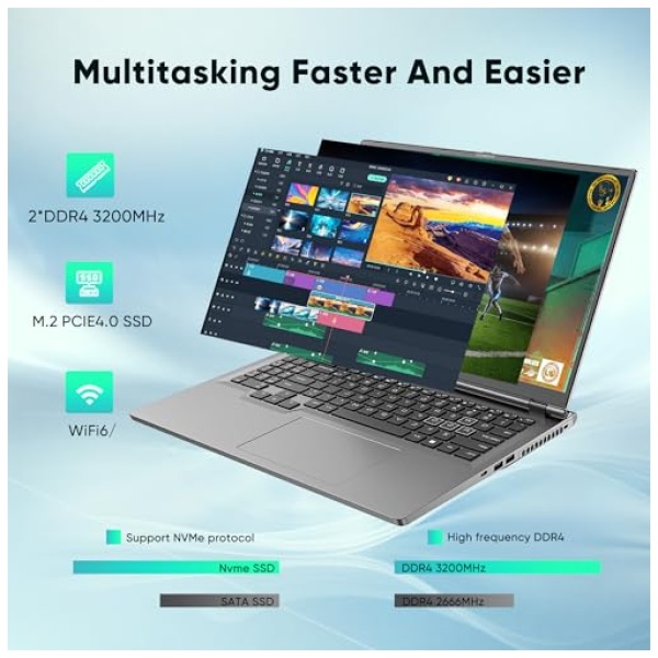 💻【Quick Connection & Efficient Cooling】WiFi6 & Bluetooth 5.2, dual-band 2.4G/5G for fast wireless connectivity; dual fans and 6 groups of heat pipes for better heat dissipation.