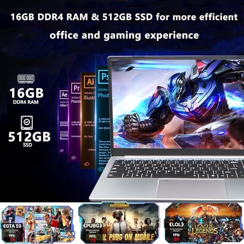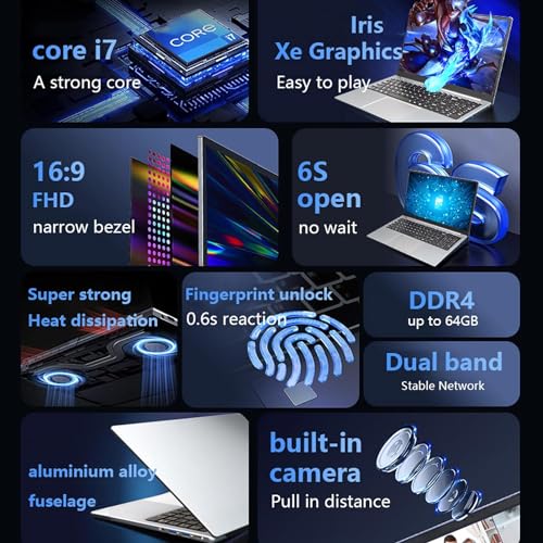 KUU Ordinateur Portable 15,6″, Core i7-1185G7, 16Go de RAM SSD 512Go Notebook PC, Wi-FI 6E, Clavier rétroéclairé et déverrouillage par Empreinte Digitale, Windows 11 Laptop