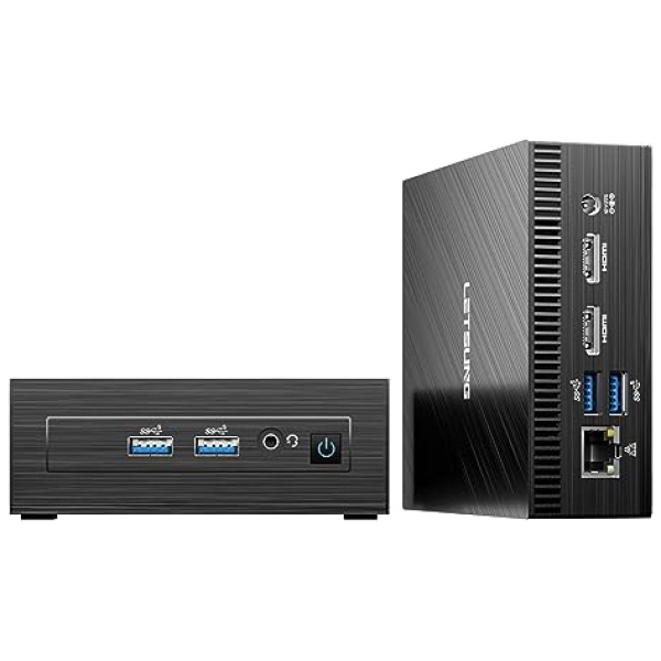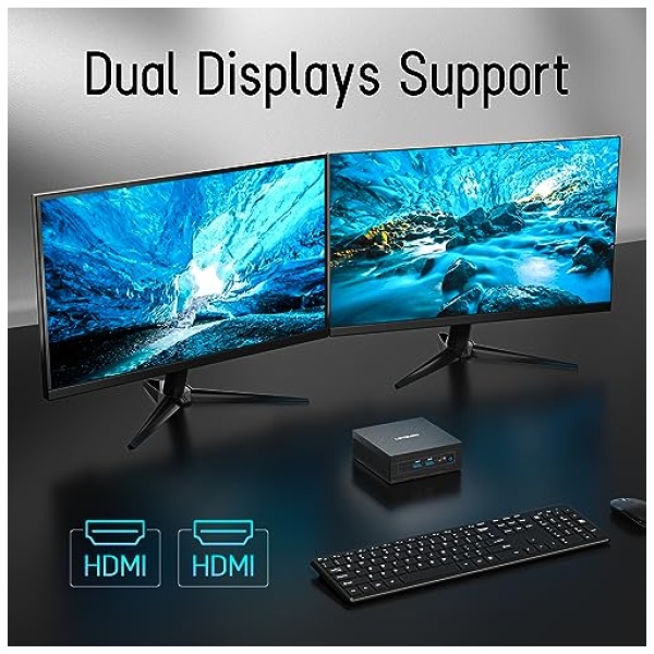 Múltiples interfaces y configuración de doble pantalla – Equipado con gráficos Intel UHD Graphics 600, los dos puertos HDMI permiten conectar hasta dos pantallas con una resolución de 1920 x 1080 @60Hz simultáneamente. Además, el mini ordenador de sobremesa tiene cuatro puertos USB 3.2, hasta 8 veces más rápidos que USB 2.0, lo que lo hace perfecto para la transferencia rápida de archivos y la conexión de discos duros externos, impresoras y mucho más.