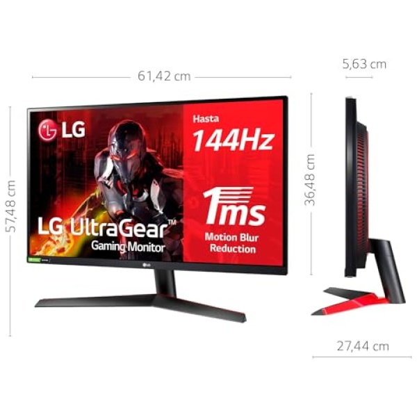 LG 27GN800-B – Monitor Gaming UltraGear 27 pulgadas, Panel NanoIPS: 2560x1440p, 16:9, 350 CD/m², 1000:1, 144Hz, 1ms, DPx1, HDMIx2, NVIDIA G-Sync Compatible, Regulable Altura, Color Negro