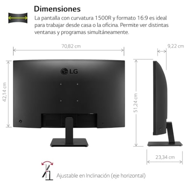 LG 32MR50C-B – Monitor Curvado, 32 Pulgadas, VA 3000:1, 1500R, 16:9, Velocidad 100 Hz, HDMIx2, Super Resolution+, AMD FreeSync Premium, Clasificación E, Negro