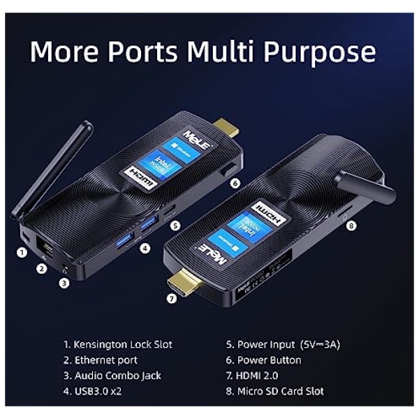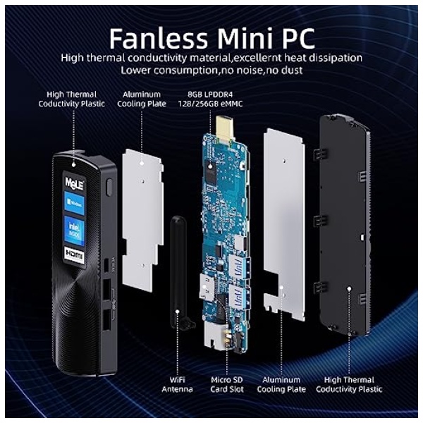 【Faneless, Pocket Size and Portable Design】Viene con una tecnología sin ventilador con 0dB de ruido que ofrece una experiencia silenciosa y cómoda cuando se trabaja. El tamaño de la palma diseñado ordenador se puede poner en un bolsillo y fácil de llevar a cabo para un viaje de negocios.
