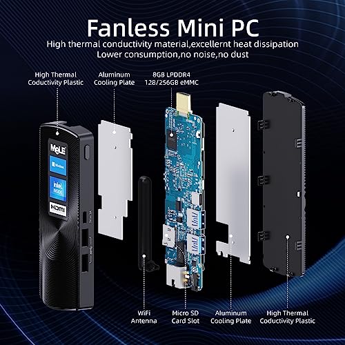 【Faneless, Pocket Size and Portable Design】Viene con una tecnología sin ventilador con 0dB de ruido que ofrece una experiencia silenciosa y cómoda cuando se trabaja. El tamaño de la palma diseñado ordenador se puede poner en un bolsillo y fácil de llevar a cabo para un viaje de negocios.
