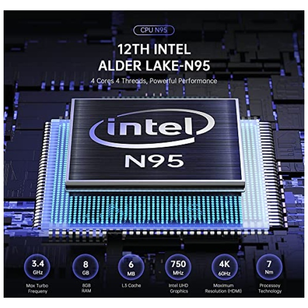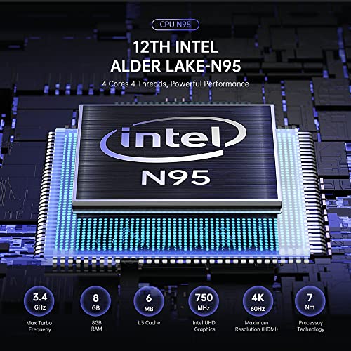 【Potente procesador de rendimiento】ACEMAGICIAN T8Plus Mini ordenador incorporado más rápido Intel 12 ª generación Ader Lake-N95, frecuencia base de 1,7 GHz, hasta 3,4 GHz, (4C/4T, 6M Cache) ,soporta el sistema operativo Linux, 8GB DDR4 RAM 256GB M.2 SSD (M. 2 es mucho mejor que mSATA/HDD en términos de tamaño más pequeño y mayor rendimiento de transferencia), disfruta de una experiencia más rápida para tu TV, entretenimiento visual en casa, streaming de vídeo, navegación Web, oficina en casa.