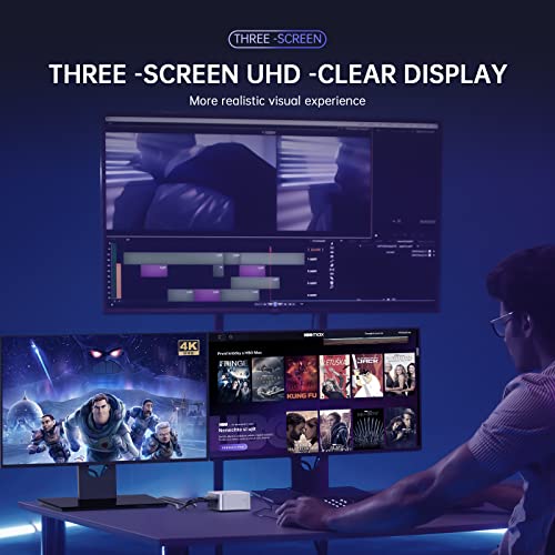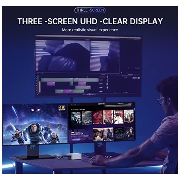 【Soporta tres pantallas/4K UHD】El mini PC cúbico está equipado con gráficos Intel UHD para garantizar un procesamiento de imágenes más rápido y soportar la reproducción de vídeo 4K FPS (4096×2160@60Hz), ofreciéndole una experiencia visual de primera clase. Los 3 HDMI recientemente actualizados le permiten conectar tres monitores simultáneamente, lo que reduce los tiempos de espera y aumenta la productividad. La calidad de imagen realista proporciona una gran experiencia visual.
