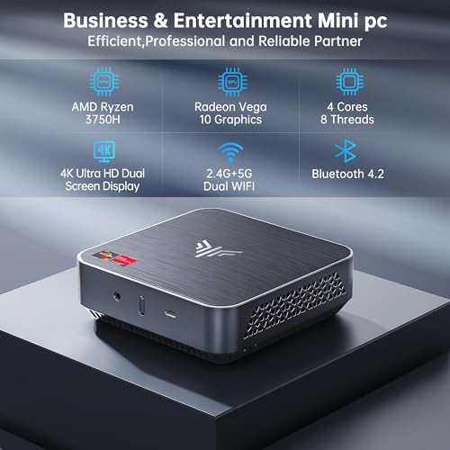 NiPoGi AM02 Mini PC,AMD Ryzen 7 3750H,16 GB DDR4 / 512 GB SSD Mini Ordenadores de sobremesa,Home Office Mini Ordenador con Graphique Radeon RX Vega 10/4K 60 Hz HDMI+VGA/5G Business PC