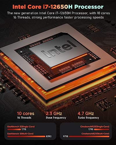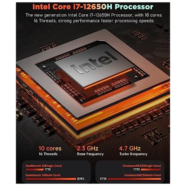 【Procesador de Gama Alta – Intel Core i7-12650H】La NiPoGi AD08 mini pc utiliza un Intel i7-12650H procesador de 12.ª gen (10 cores 16 threads,hasta 4,7 GHz, 24MB cache, 45W TDP). La mini ordenador de sobremesa cuenta con un núcleo potente y eficiente que funciona mejor que el i7-10810U/Ryzen 7 5800H y ofrece una respuesta rápida, ya sea para jugar o renderizar gráficos 3D ricos. Fuerte rendimiento, perfecto para el uso diario, como oficina de negocios, entretenimiento de juegos, cine en casa.