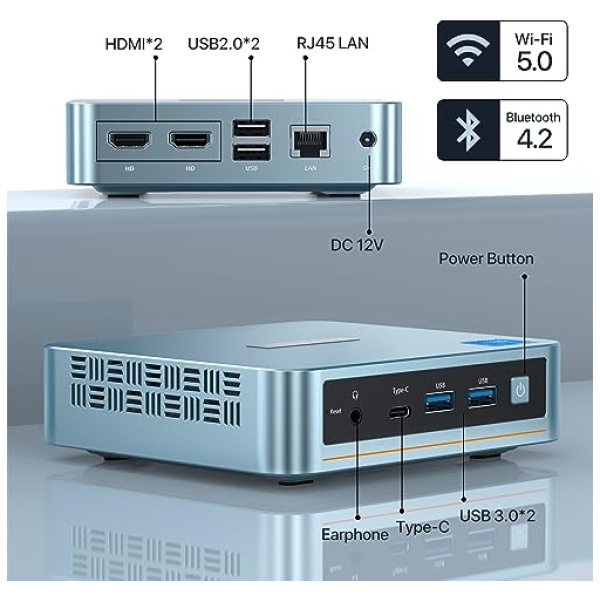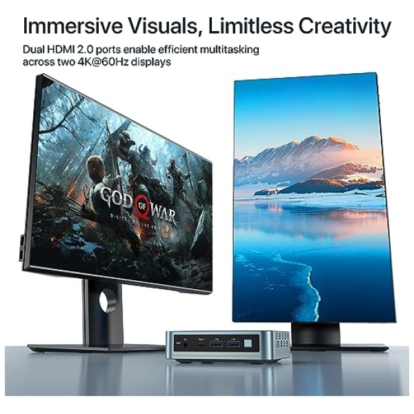 ?Dual HDMI, pantalla dual 4K? La mini computadora de escritorio está equipada con gráficos Intel Uhd (750 Mhz máx.), ofrece un rendimiento gráfico potente, admite reproducción de video 4K, conecta la PC a un proyector como cine en casa y disfruta de una variedad de entretenimiento. Dos puertos HDMI 2.0 le permiten realizar múltiples tareas en dos pantallas 4K de 60 Hz. Incluye soporte Vesa para configurar una PC todo en uno y liberar espacio en el escritorio.