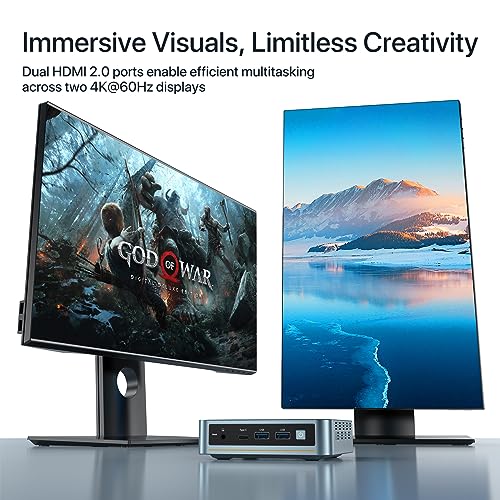 ?Dual HDMI, pantalla dual 4K? La mini computadora de escritorio está equipada con gráficos Intel Uhd (750 Mhz máx.), ofrece un rendimiento gráfico potente, admite reproducción de video 4K, conecta la PC a un proyector como cine en casa y disfruta de una variedad de entretenimiento. Dos puertos HDMI 2.0 le permiten realizar múltiples tareas en dos pantallas 4K de 60 Hz. Incluye soporte Vesa para configurar una PC todo en uno y liberar espacio en el escritorio.