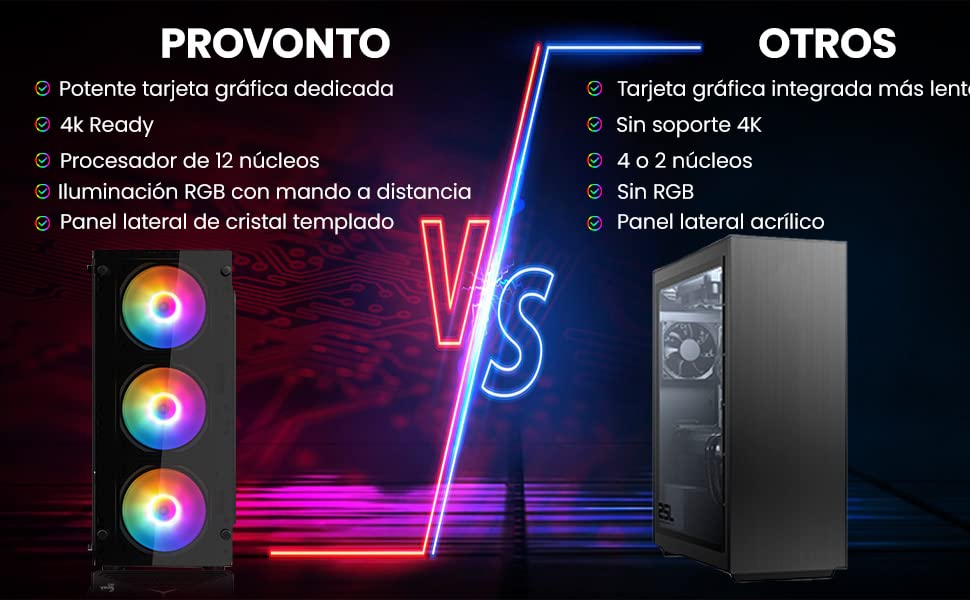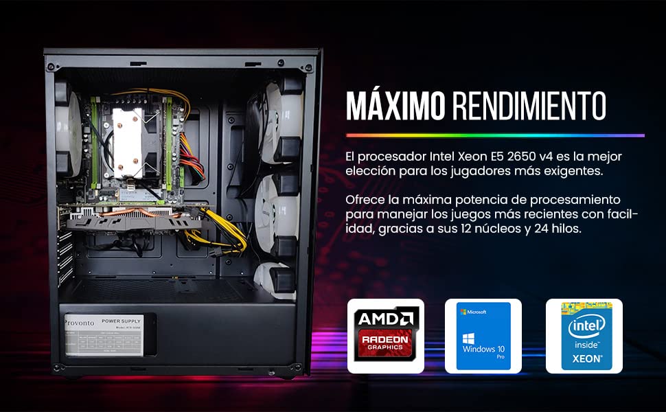 Provonto 12 Core Lite PC Gaming [Intel Xeon E5-2650 v4, AMD Radeon RX 580 8GB, RAM 16 GB, SSD 512 GB] Windows 10 Pro Ordenador Barato Gamer Juegos Sobremesa Completo