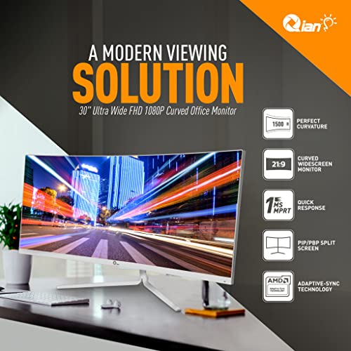 Qian Ultra Wide FHD 1080P 30″ Monitor Curvo, 100 Hz VA Panel Desktop Monitor, 21:9, 178° ángulo de visión, 16.7M Color de Pantalla, AMD Freesync GSync, inclinación Ajustable
