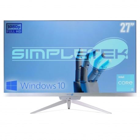 SIMPLETEK PC All in One RGB Core i3 Windows 10 Pro 27″ Full HD RAM 4GB SSD 120GB | Webcam Integrada, WiFi5, Bluetooth | Ordenador fijo de sobremesa