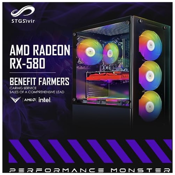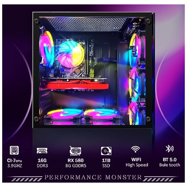 STGSivir Ordenador de sobremesa para Juegos, Intel Core i7 hasta 3.9GHz, Radeon RX 580 8GB GDDR5, 16GB, SSD 1TB, WiFi, BTB 5.0, Ventilador RGB x 6, W10H64