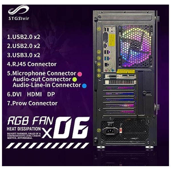 Conectividad: ventilador RGB x 6 | 1 x RJ-45 | Wi-Fi USB | USBBluetooth 5.0 | Tarjeta de vídeo AMD Radeon RX 580 8G GDDR5 | 1xHDMI | 3x DisplayPort