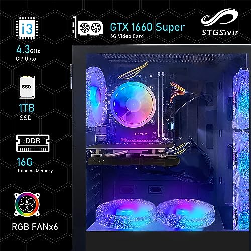 STGsivir PC de Escritorio para Juegos, Intel Core i3-10100F hasta 4.3GHz, GeForce GTX 1660 Super 6GB GDDR6, 16GB DDR4, 1TB SSD, 600M WiFi, BTB 5.0, Ventilador RGB x 6, W11H64