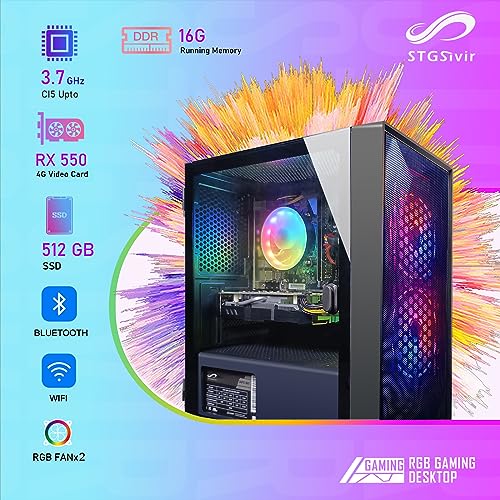 STGsivir PC de Escritorio para Juegos, Intel Core i5 3.3GHz hasta 3.7GHz, Radeon RX 550 4GB GDDR5.16GB, 512GB SSD, 600M WiFi, BTB 5.0, Ventilador RGB x 2, W10H64