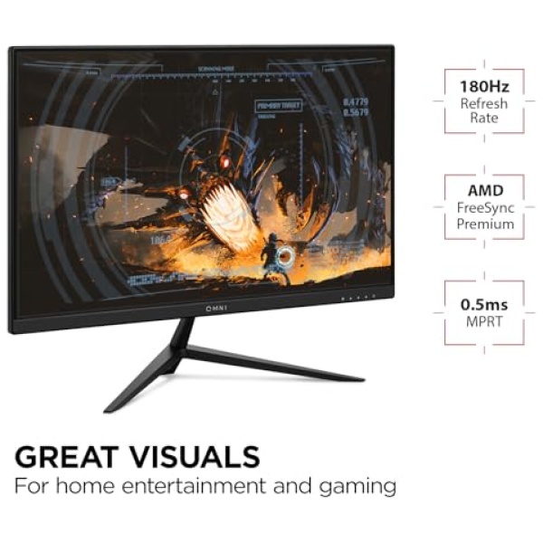 IDEAL PARA ENTREMENIMIENTO EN EL HOGAR Y JUEGOS: Resolución Full HD (1920x1080p), tiempo de respuesta ultrarrápido de 1 ms MPRT y una increíble frecuencia de actualización de 180 Hz para una fluidez visual excepcional y gráficos impecables, sin importar la rapidez de la acción en el juego.