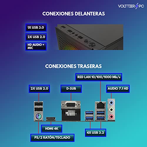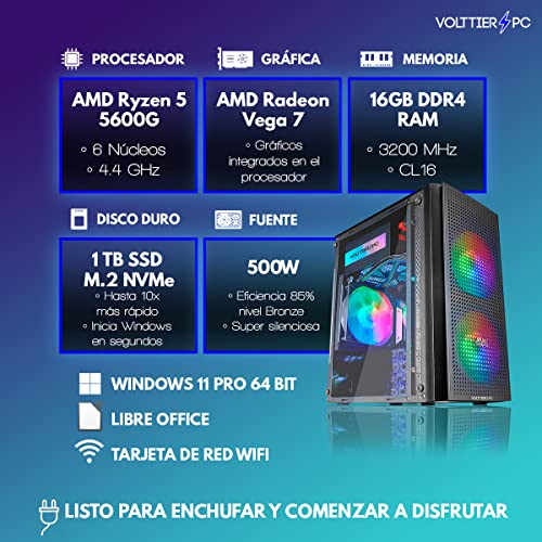 VolttierPC – PC Gaming AMD Ryzen 5 5600G 6×4.4Ghz | 16GB RAM DDR4 | 1TB M.2 SSD | Tarjeta Gráfica AMD Radeon Vega 7 | WiFi | Windows 11 Pro | Ordenador Gamer