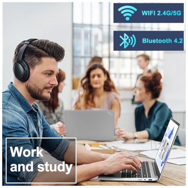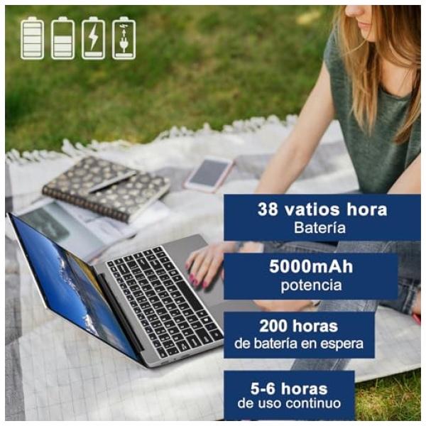 【CONECTIVIDAD y PUERTOS】 Batería grande de 5000 mAh, espera hasta 200 horas, 5-6 horas de reproducción de video. Con Wi-Fi 2.4G + 5G y Bluetooth 4.2, utilizando dos ranuras USB 3.0 y HDMI disponibles, esta computadora portátil con Win le permite expandirse a través de múltiples dispositivos, lograr una transmisión inalámbrica rápida y una red fluida en cualquier lugar, como una cafetería, una biblioteca o incluso mientras viaja.